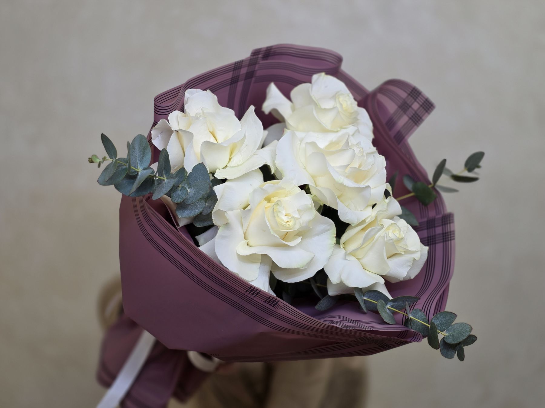 Изысканный букет, воплощающий истинную французскую элегантность. Классические бокаловидные бутоны с тонким ароматом и идеальной формой лепестков.