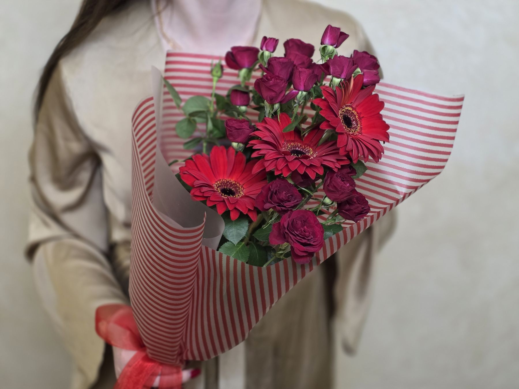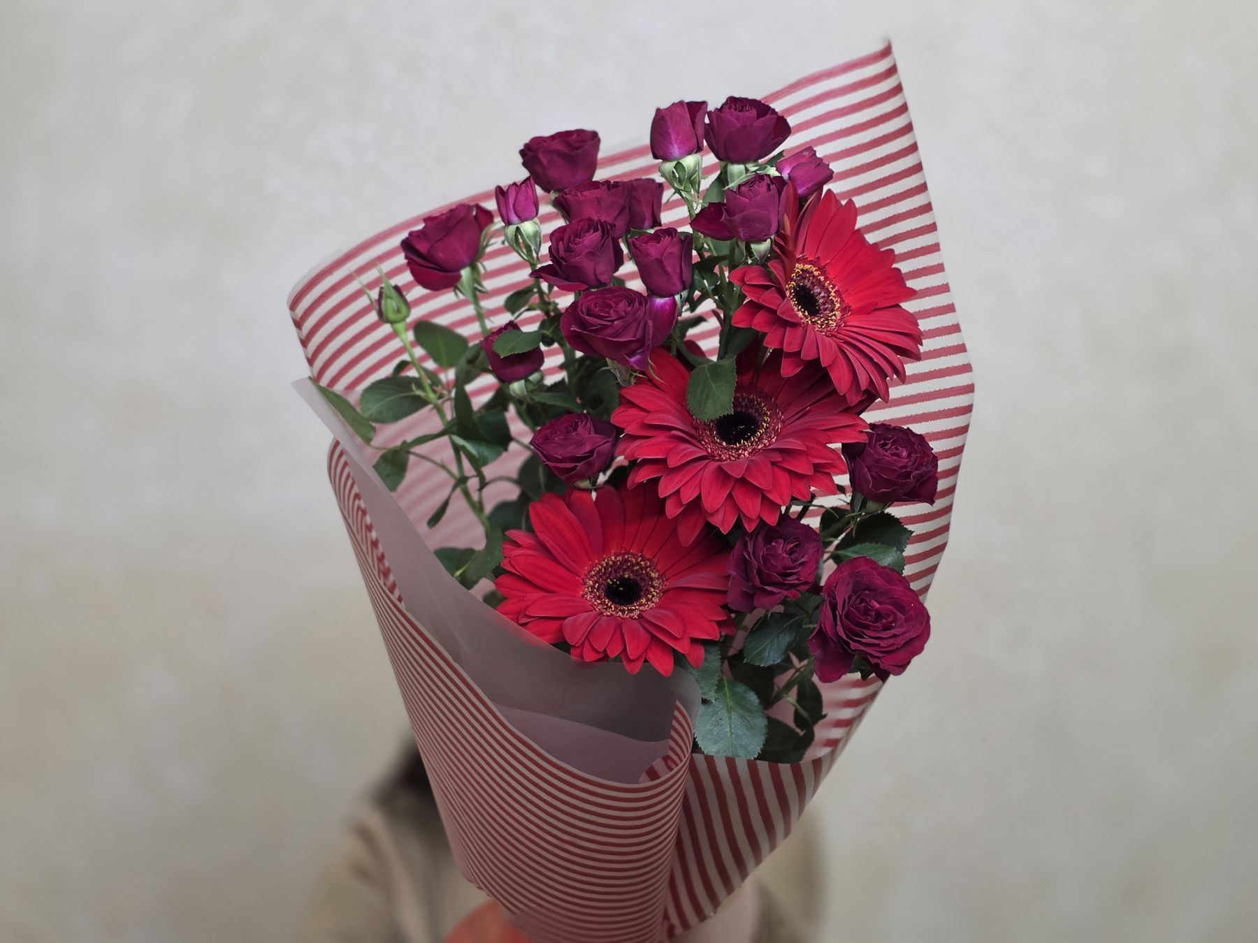 Букет из кустовых роз и гербер – энергия лета в каждом лепестке