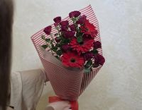 Букет из кустовых роз и гербер – это глоток солнечного света и хорошего настроения.